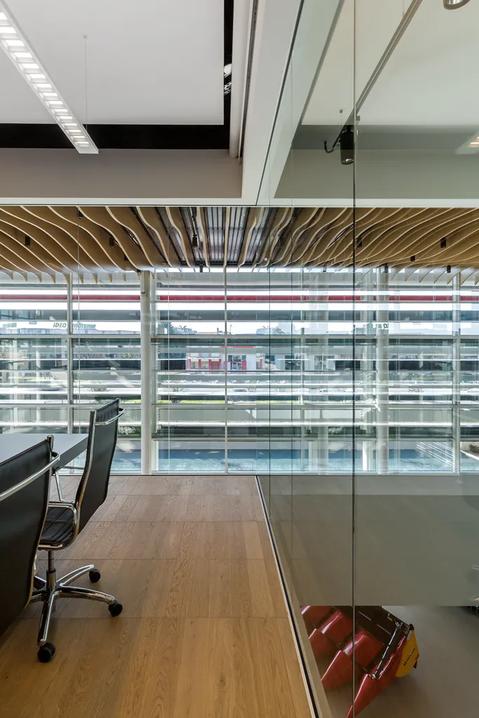 Oltre alla sua valenza estetica, la vasca riveste un ruolo fondamentale nel sistema di gestione delle risorse idriche dell’edificio. Essa funge infatti da serbatoio di stoccaggio per l’acqua di ricircolo impiegata nei sistemi di riscaldamento e raffreddamento a pompa di calore, contribuendo all’efficienza energetica dell’intero complesso. Questo sistema consente un’ottimizzazione dei consumi idrici ed energetici, riducendo l’impatto ambientale e garantendo un approccio sostenibile alla climatizzazione degli spazi interni.